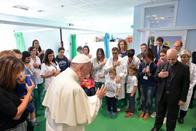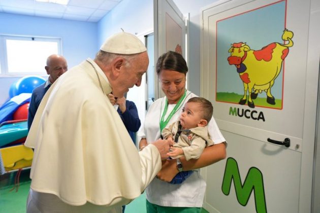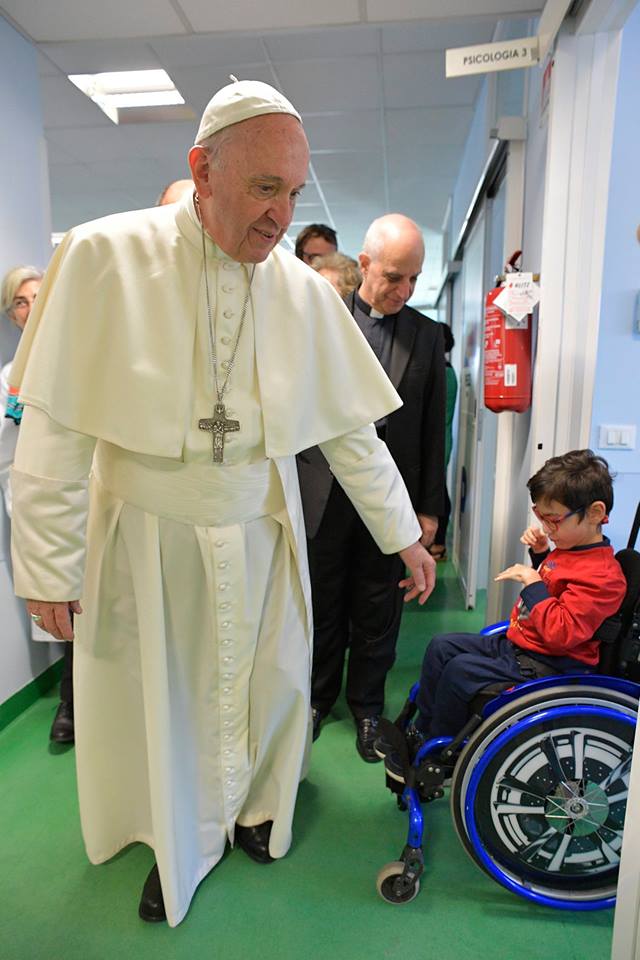 Ở khoa nhi, cuộc viếng thăm thật cảm động, Đức Giáo hoàng đã chơi với các bệnh nhi và nâng đỡ tinh thần các cha mẹ kiệt sức vì phải đi đi về về chăm sóc con nằm bệnh viện. Ngài dự một buổi tập trị liệu cho các em phục hồi lại chức năng vận động.