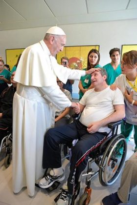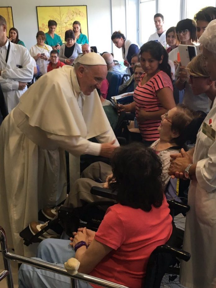 Chiều thứ sáu 22-9-2017, Đức Phanxicô đã bất ngờ đến thăm Trung tâm Thánh Lucia, một trung tâm nổi tiếng ở Rôma săn sóc các bệnh về thần kinh như tai biến mạch máu não, bệnh chấn thương cột sống, bệnh Parkinson, bệnh xơ cứng bắp thịt.