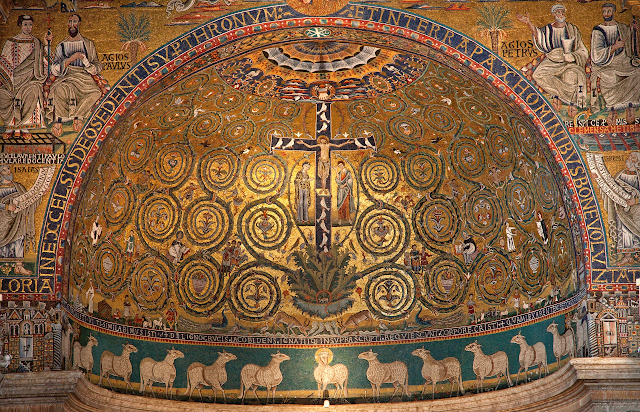 Vương cung thánh đường San Clemente. Bức tranh khảm cung thánh nổi tiếng: