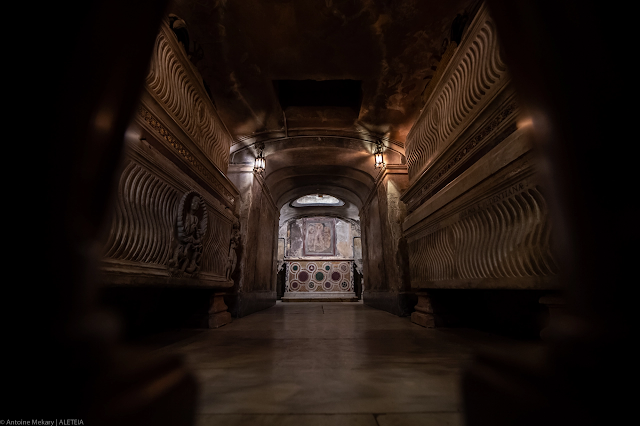 Vương cung thánh đường Santa Prassede. Trong hầm mộ — được cải tạo vào thế kỷ 18 — lưu giữ các thánh tích của Thánh Praxedes và Thánh Pudentiana trong hai quan tài bằng đá quý. Vương cung thánh đường Santa Prassede thuộc về “Patrimonio del Fondo Edifici Culto – Bộ Nội vụ Ý.”