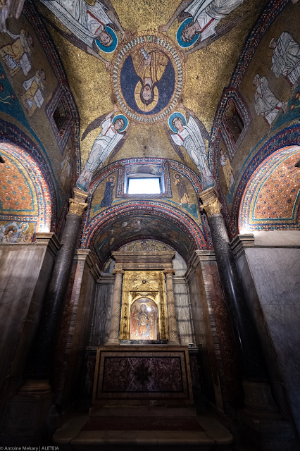 Vương cung thánh đường Santa Prassede. Nhà nguyện Thánh Zeno còn được gọi là “Vườn địa đàng” với những bức tranh khảm lộng lẫy phủ toàn bộ nhà nguyện. Một ơn đại xá đặc biệt gắn liền với bàn thờ này: Có thể giải thoát một linh hồn khỏi Luyện ngục sau năm Thánh lễ. Vương cung thánh đường Santa Prassede thuộc “Patrimonio del Fondo Edifici Culto – Bộ Nội vụ Ý.”