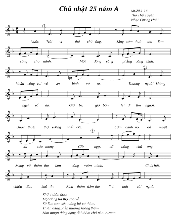 Nhạc diễn ý bài Tin Mừng Chúa Nhật XXV Quanh Năm, A | Quang Hoài