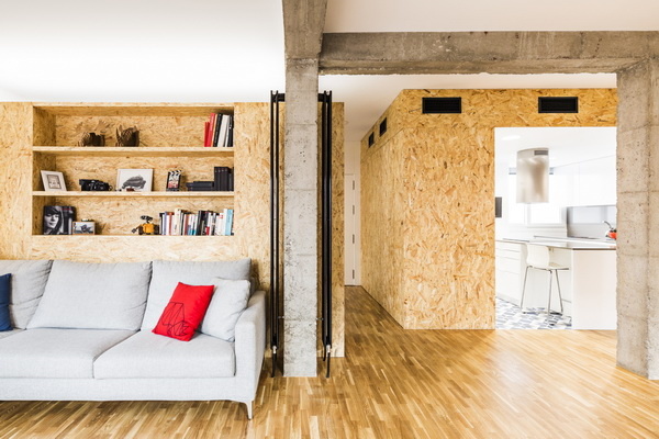 Các bảng OSB có tính thẩm mỹ rất đặc trưng ngày càng được tích hợp vào thiết kế kiến trúc. Các bảng này được làm bằng gỗ dăm ép trong các lớp vuông góc và liên kết với nhựa ở áp suất và nhiệt độ cao. Chúng có độ bền cơ học và độ cứng cao. Ngoài khả năng cách âm tốt, OSB không có khoảng trống bên trong và không có nút thắt hay vết nứt, vì vậy chúng rất đồng đều. OSB cũng là vật liệu sinh thái và bền với môi trường ngoài trời dưới tác động của mưa, độ ẩm, gió và nhiệt. Ngoài ra, các tấm bảng được tái chế hoàn toàn. Tuy nhiên, vì chúng có bề mặt gồ ghề, không thể kết hợp với các sản phẩm nhiều lớp.