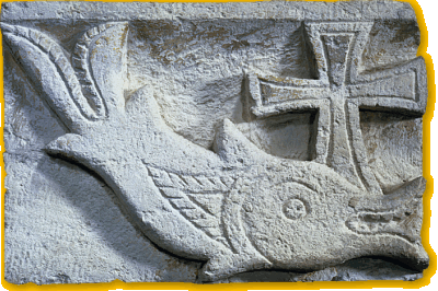 Chiếc neo cũng thường đi đôi với con cá. Cá ám chỉ Chúa Giêsu. Giêsu biểu tượng bằng hình con cá, là một từ viết tắt từ tiếng Hy Lạp, cá là ICHTHUS, có nghĩa Chúa Giêsu Kitô, Con Thiên Chúa, Đấng Cứu Thế. (xem lại bài biểu tượng Con Cá ICHTHUS)